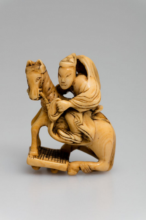 Equestrian miniature of “captain” Oguri on a chessboard – netsuke