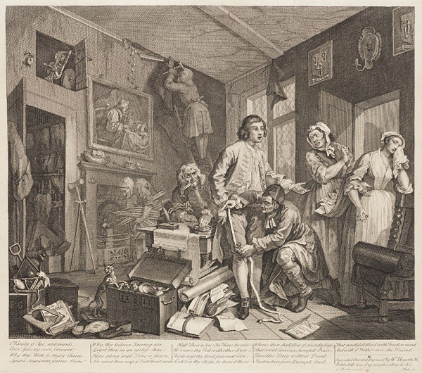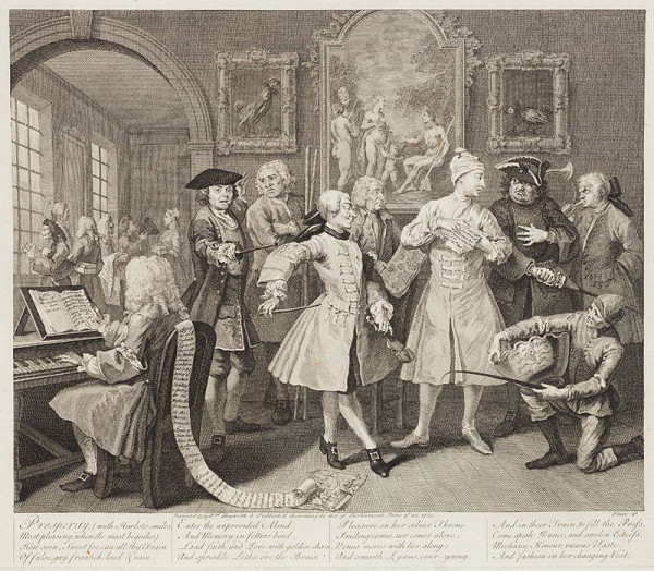Hogarth’s cycles of paintings illustrating the material as well as moral decline of the individual were launched in 1732 by A Harlot’s Progress. It was followed by A Rake’s Progress and Marriage a la Mode. A Rake’s Progress exemplifies how inspiring the narrative of the desperate story of the ruin of modern man could be, spawning as it did a vast number of visual interpretations and allusions. Hogarth’s cycles became immensely popular already in the 18th century, at the time they were first issued. The multitudes of subsequent replicas, reproductions and copies became even more varied than the multiplicity of meanings present in Hogarth’s visual testimony itself. Both the formal qualities and the message of his images suffered a certain loss in subsequent generations of copies. As a result, many collectors and audiences, particularly in the 19th century, were only familiar with Hogarth’s work from later editions and reproductions, where neither the authenticity nor the quality of the work was essential.